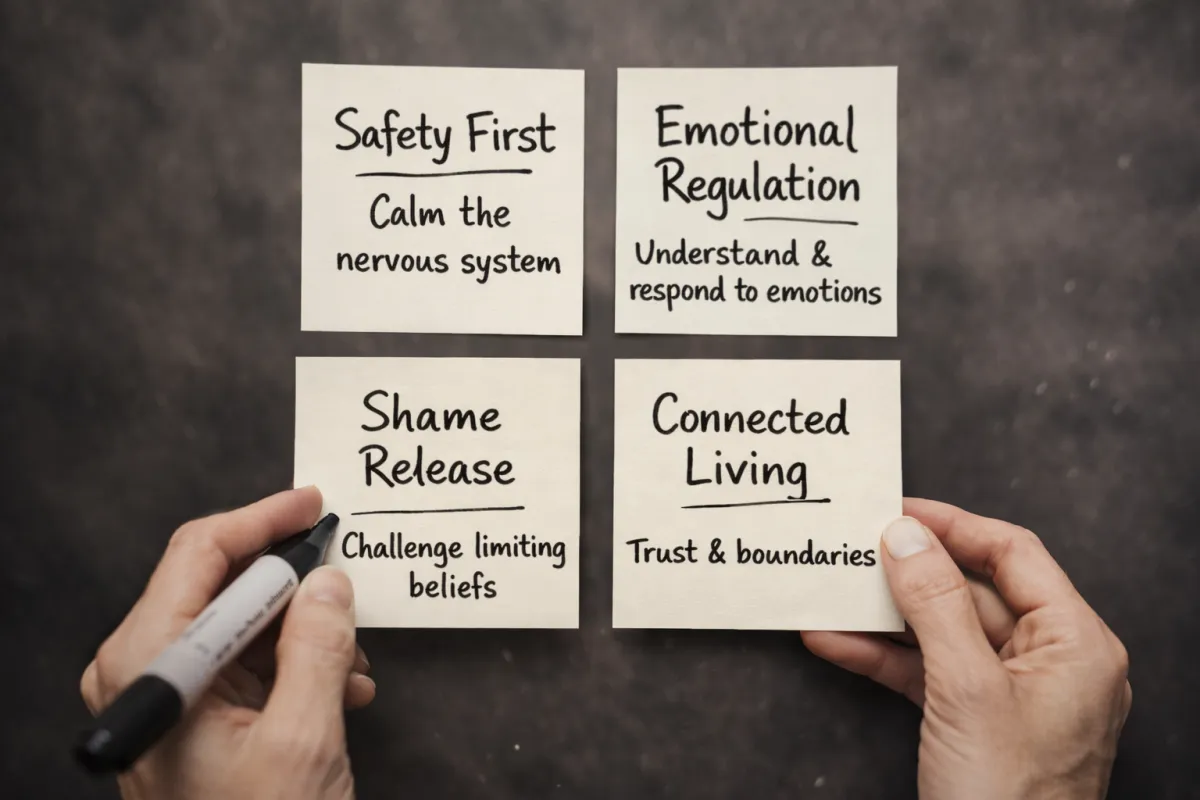 This is not surface-level mindset work. It is grounded in trauma awareness, nervous system regulation, and attachment repair.